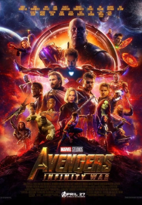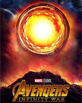 ‘어벤져스 : 인피니티 워 (2018)’ 포스터에는 수 십 명의 슈퍼히어로 등장인물들이 한 명도 없고, 그 자리에 타노스의 원형 우주선만 덩그러니 위치해 있습니다.