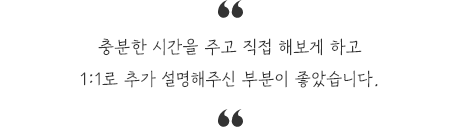 본인 일처럼 적극적으로 나서서 수업지도 해주신 강사님 감사했습니다^^