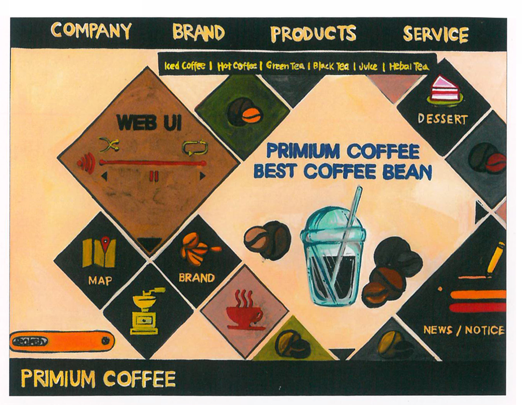 | 좋아하는 상표/브랜드 자료수집 및 분석을 거쳐 새롭게 구상한 디자인을 완성 할 수 있다.(ex. 자유 주제) | 수작업을 통해 만들어낸 여러 가지 소스들을 종합하여 주제에 따라 포트폴리오를 어떻게 구성할 것인지 스케치로 정리해 볼 수 있다.(ex. 웹메인 페이지 or 책표지) | ||