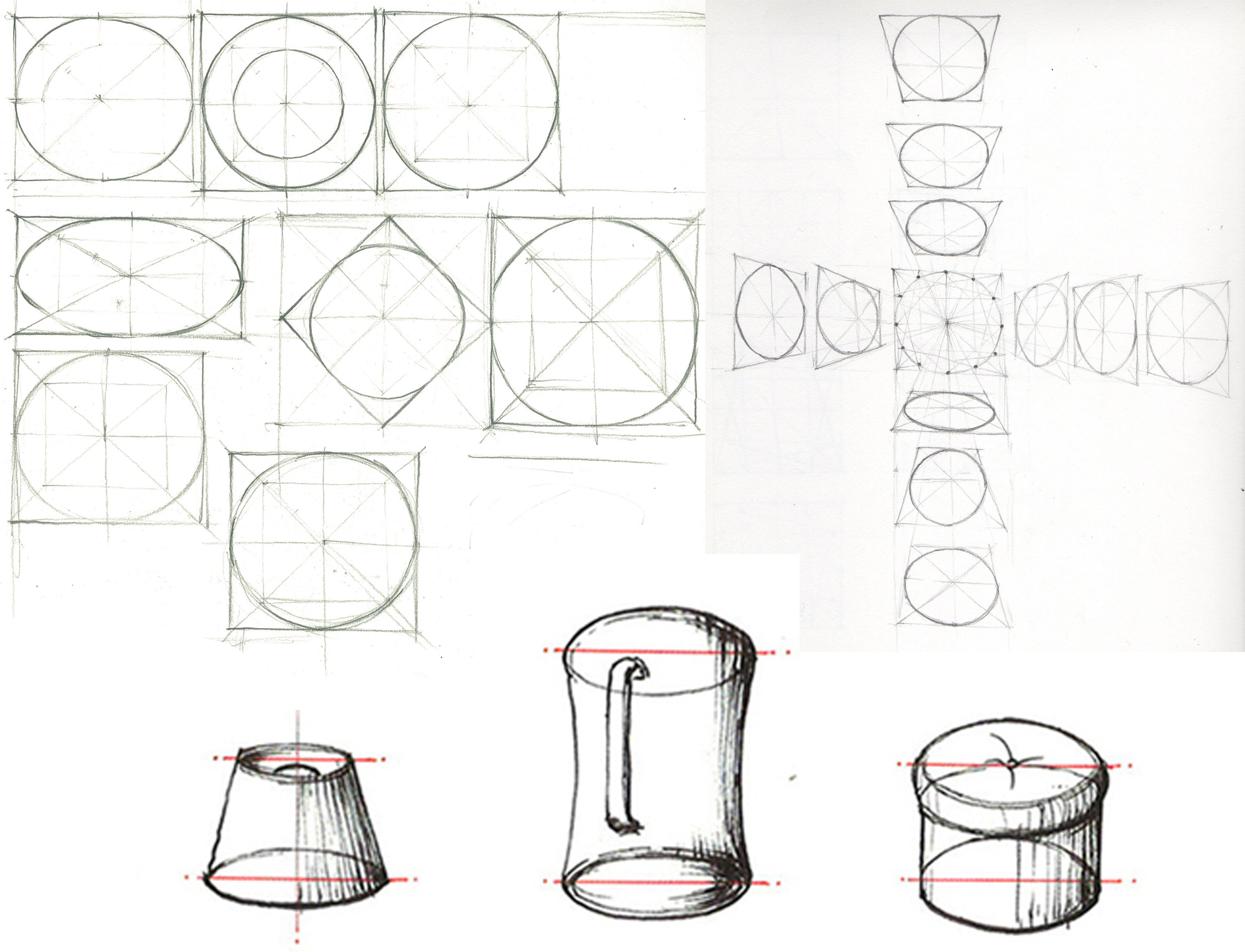| - 다양한 선 연습을 통해 자신만의 선을 찾을 수 있다.(ex. 가로,세로,사선, 강약선, 자유로운 곡선..)- 보여지는 면을 눈대중으로 분할하는 감각을 익혀 정확한 도형을 그릴 수 있다.(ex. 정사각형, 직사각형, 삼각형, 마름모, 사다리꼴..) | 여러 가지 원의 형태로 시점에 따라 다양한 사물을 그릴 수 있다.(ex. 조명, 의자, 컵..) | ||