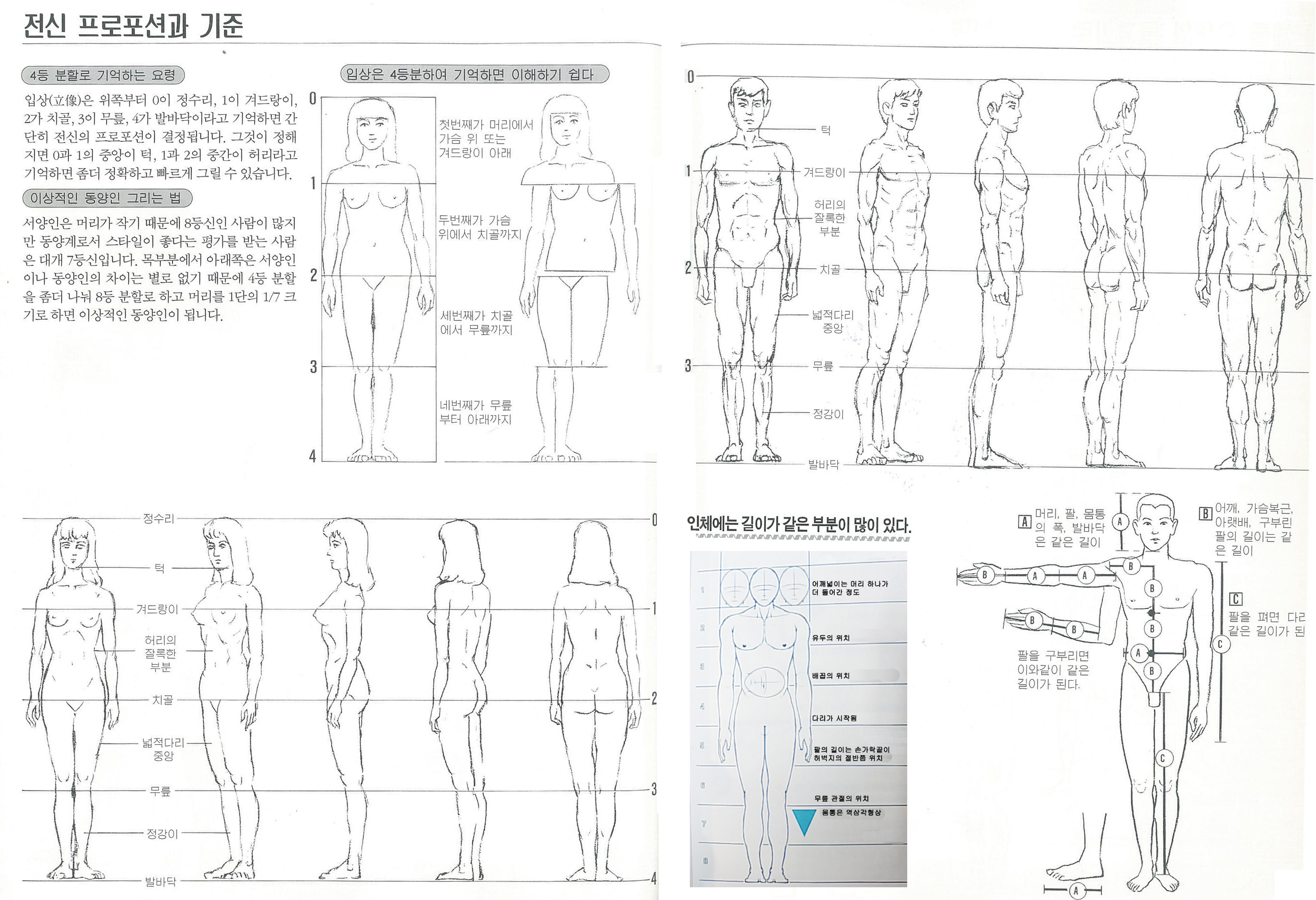 | 사물의 형태를 파악하고, 표현하기 위한 기초적인 트레이닝으로 입체감 있는 사물을 정확하게 그릴 수 있다.(ex. 열린 박스, 가방, 수납장..) | 인체의 전체적인 비율과 구성에 대해 익힐 수 있다.(ex. 남,여) | ||