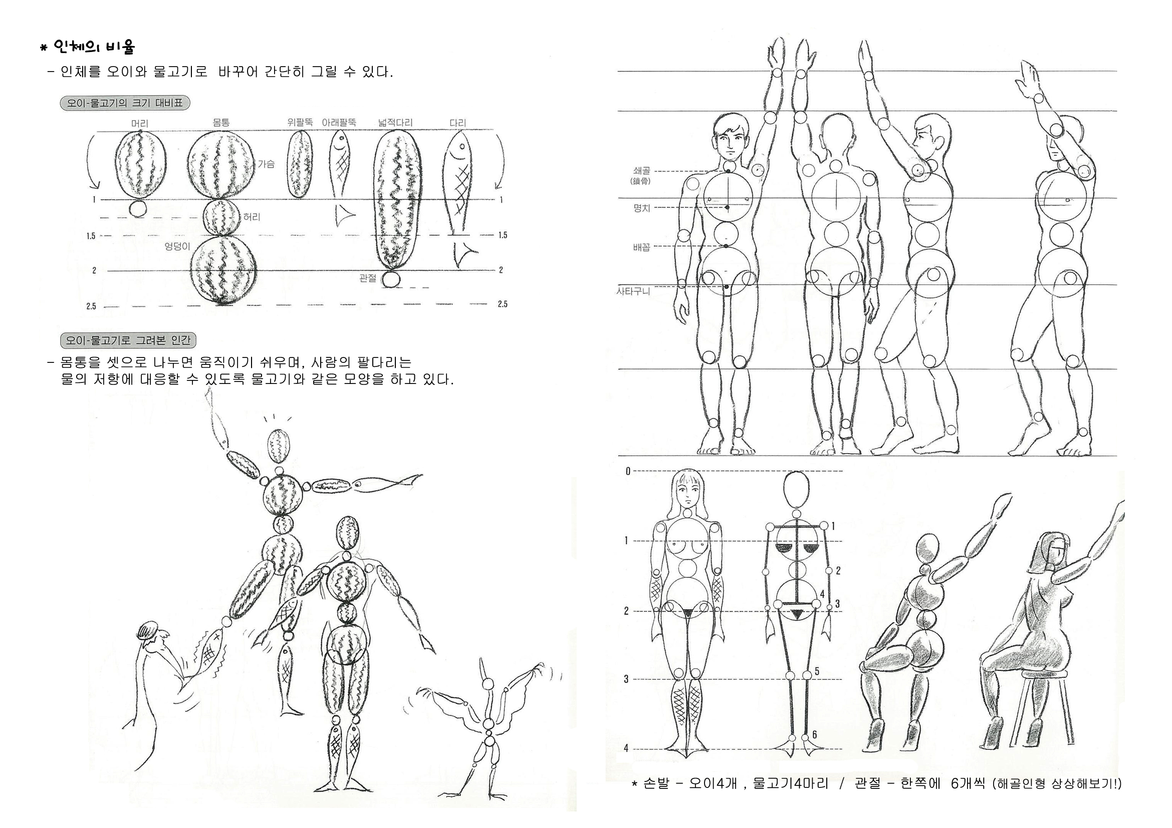 | 인체의 동작을 근육의 흐름에 따라 덩어리로 리듬감 있게 표현할 수 있다. | 간소화시킨 인체에 근육과 살을 입혀 더욱 생동감 있는 인체를 표현할 수 있다. | ||